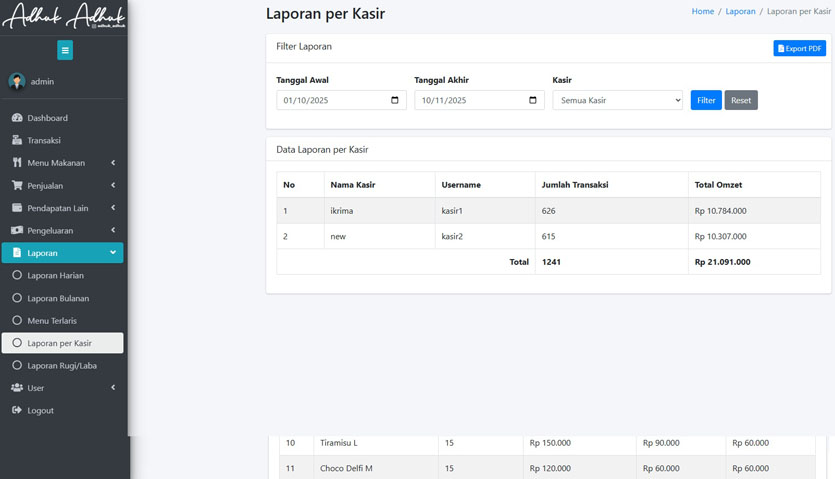 • Dukungan multi-kasir (bisa mencatat penjualan dari beberapa kasir)