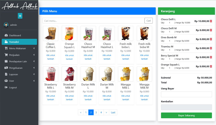 • Pilih menu, jumlah, dan otomatis menghitung total